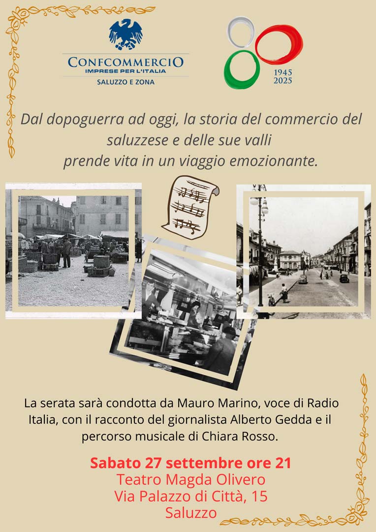 Nel corso del 2025, in occasione degli 80 anni di Confcommercio, le Associazioni Commercianti della Provincia di Cuneo in cui è strutturata l’Organizzazione hanno promosso una serie di eventi territoriali di avvicinamento alla Convention di Sistema. Una festa diffusa ed itinerante che attraversa lo spazio e il tempo, per riportarci al futuro che stiamo già vivendo.